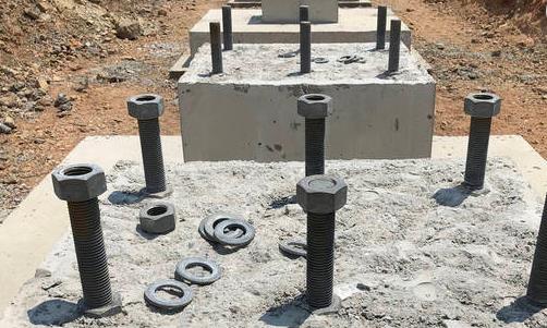 澆筑混凝土前,螺栓套板上部的螺桿及螺母須抹上黃油后用塑料布包裹并用鐵絲扎緊。澆筑混凝土,特別是采取泵送混凝土施工時,須避免混凝土的擠壓,導(dǎo)致地腳螺栓走位。